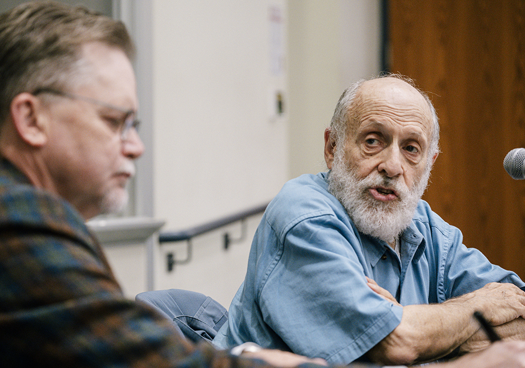 Harvey Silverglate, right, and BC Law Professor Kent Greenfield described free speech differently.
