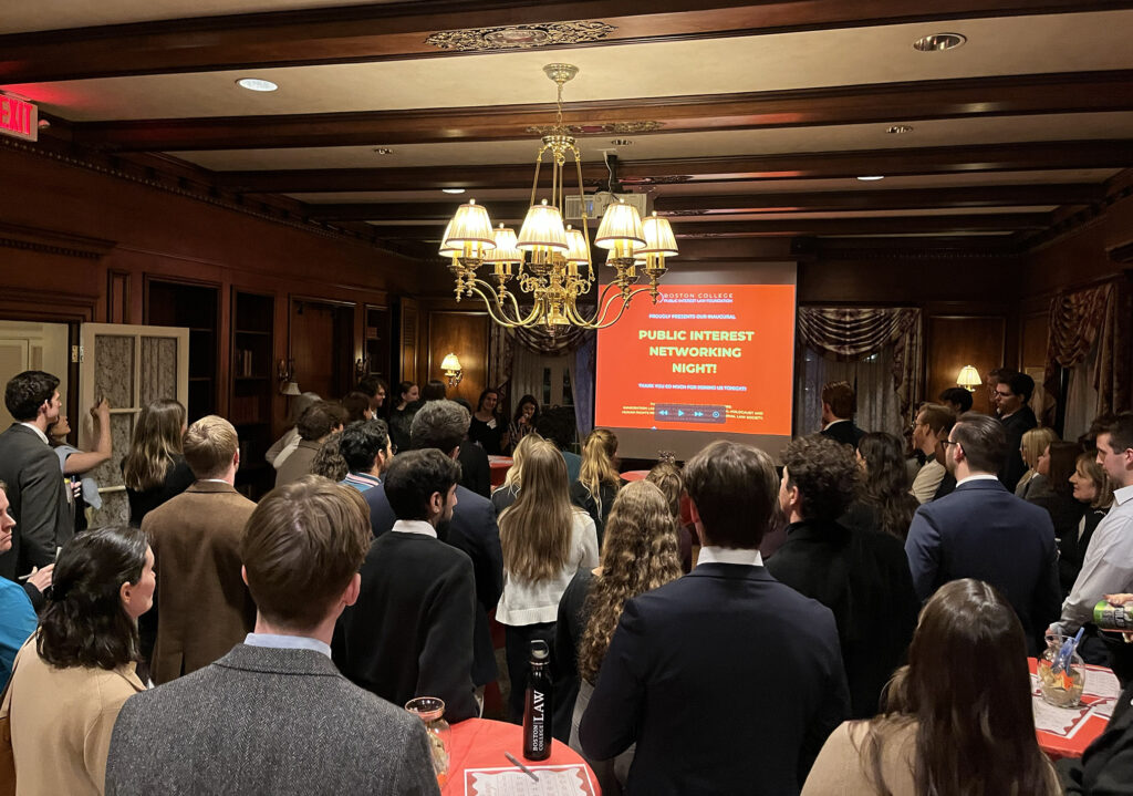 More than 80 attorneys and students gathered at Alumni House on the Newton campus for the first ever Public Interest Networking Night on November 12. By reorganizing its alumni engagement and communications teams, PILF effectively tapped into the Law School’s public interest network, yielding a high turnout. That in turn gave students the chance to explore the scope and range of career paths with the pros: judges, clerks, legal aid and government lawyers, as well as attorneys in practice areas like consumer protection, immigration, and civil rights.